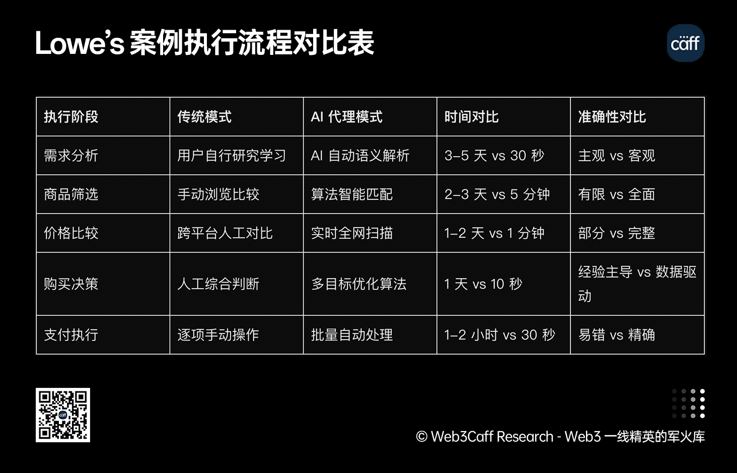 相比之下,AI 代理模式展现出系统性的优势。在接收到用户需求的瞬间,AI 系统开始了多线程的并行处理过程。它同时访问 Lowe’s 的完整商品数据库(包含数万种建材产品的详细规格、性能指标、用户评价等)、实时库存信息、当地天气历史数据、施工难度数据库等多个数据源。