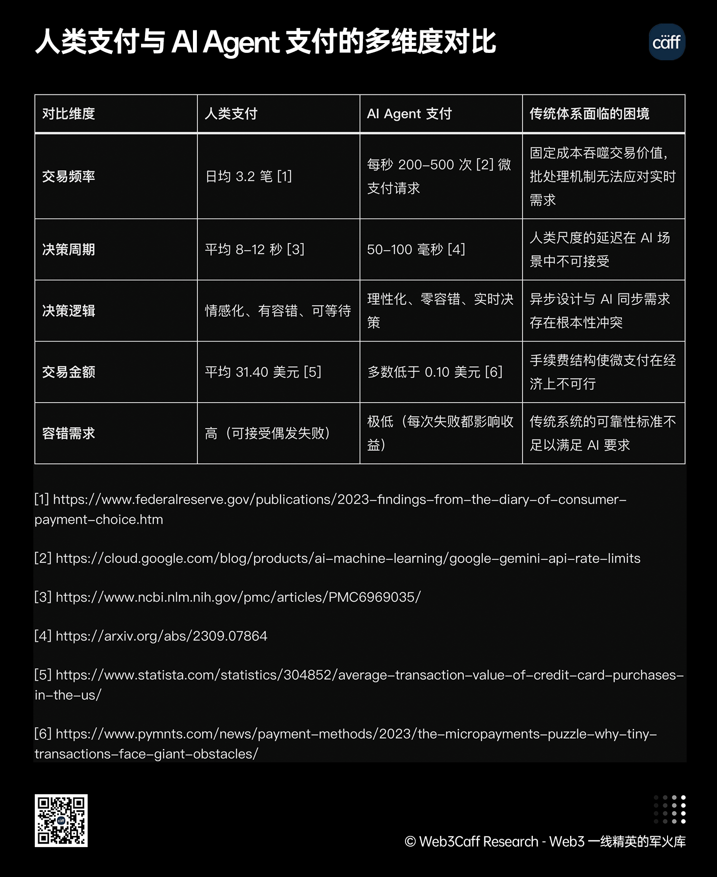 要理解传统支付系统在 AI 时代面临的适配性挑战,需要从交易频率和决策逻辑两个核心维度切入。